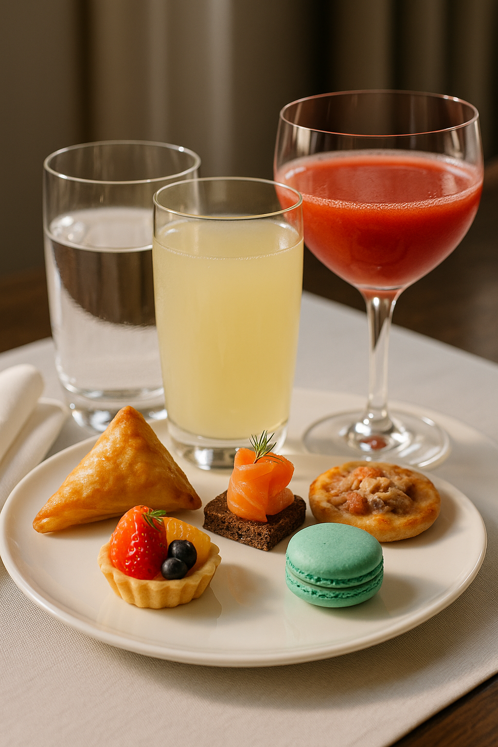 3 pièces salées, 2 pièces sucrées, citronnade, fraise & eau